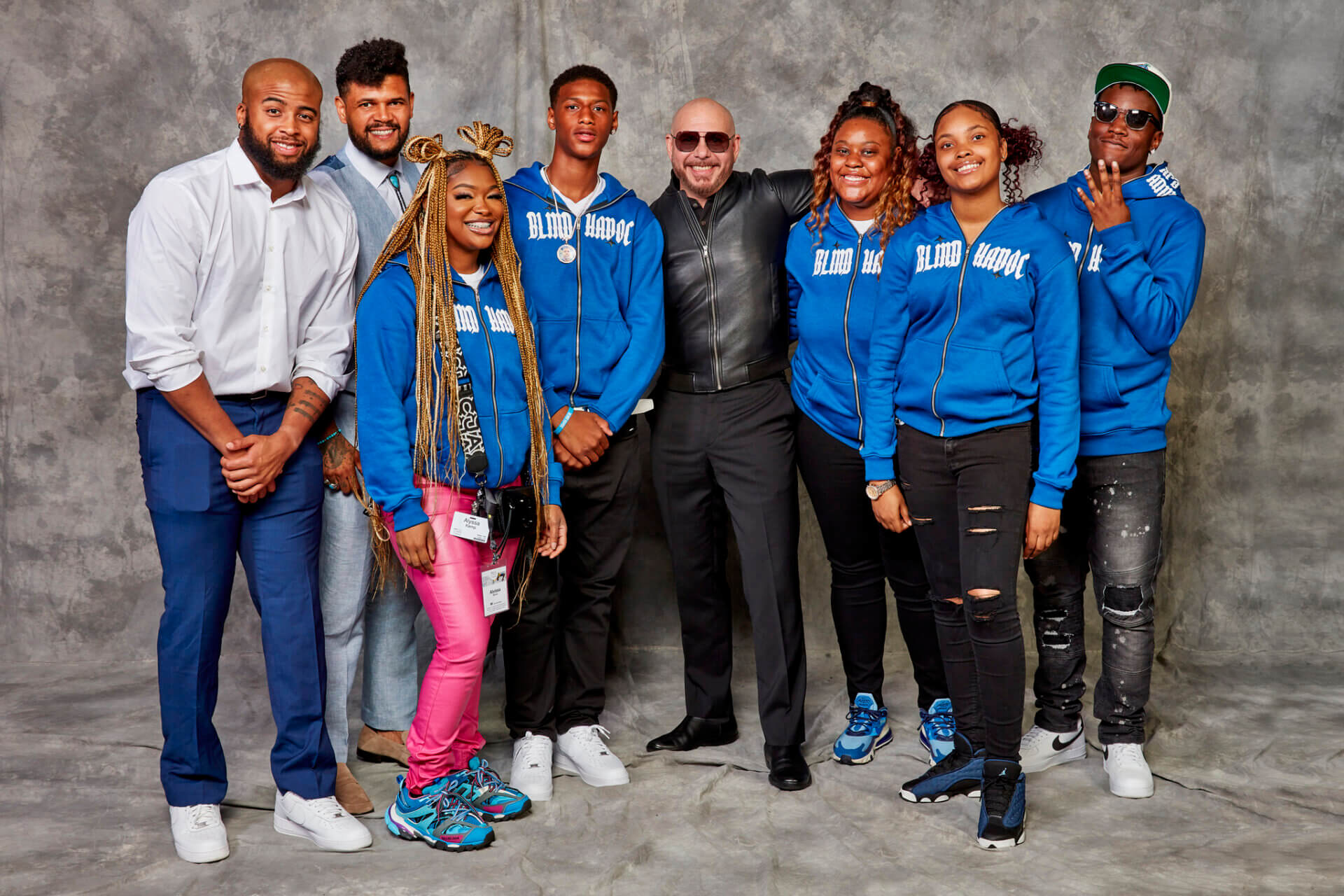 Pictured above, from L-R: Chuckie Smith, Angel Sandro, Alyssa K., Qyntin C., Pitbull, Janae H., Shante P., Tremell C.